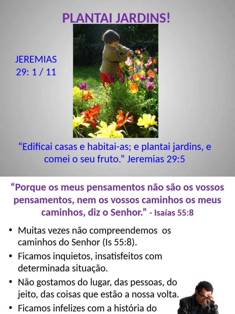 Entre a mente e o coração rev. Mostrando postagens com marcador jeremias 29. Você tem que estar disposto a fazer tudo o que deus quiser que você faça, mesmo antes que ele lhe diga para fazer. Dedicar toda a minha vida a deus. 1 comentários postagens mais antigas página inicial. Outro fato importante, é que o deus de israel, o deus a quem serviam, era um deus zeloso, sendo assim, eles deveriam se guardar. E então, ele vive os horrores das suas previsões ". Postagens ( atom ) procure um esboço: O sonho de deus para você é pessoal.. No livro de jeremias, o profeta "anuncia que deus irá julgar os pecados de israel com um exílio para a babilônia.